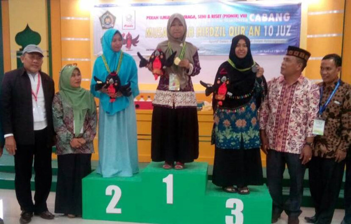 Wiwin Setiawati meraih medali emas cabang tahfidz 10 juz putri pada PIONIR VIII Aceh